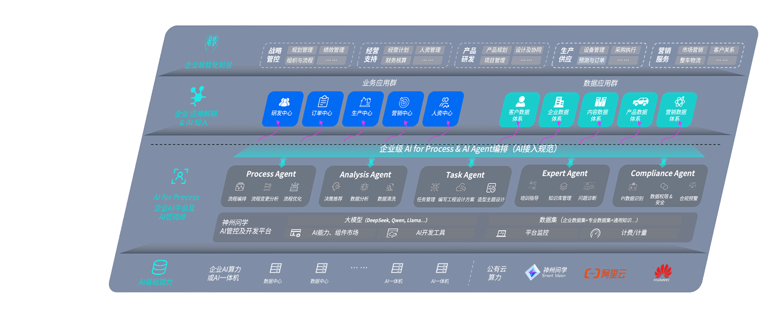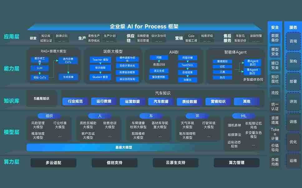 开元ky888问学智车解决方案是一套基于AI技术的汽车行业智能化系统,,覆盖从底层算力到顶层AI应用的全栈方案。。。方案由算力层、、模型层和应用层组成:算力层,,,,方案支持多种一体机配置,,,具备云端灵活部署、、多云适配以及动态优化计算资源的能力;模型层,,,,开元ky888问学平台版提供了企业级AI应用一站式构建与管理平台,,,支持基于后训练强化技术的汽车企业专属模型的训练、、评测和运营;应用层,,,,开元ky888问学DeepSeek版提供包括超级员工、、智能招采、、、智能营销、、、智能客服、、AI for BI等一系列解决方案,,,,可助力汽车行业实现数字化转型,,,让管理更智能、、、响应更敏捷。。。。
